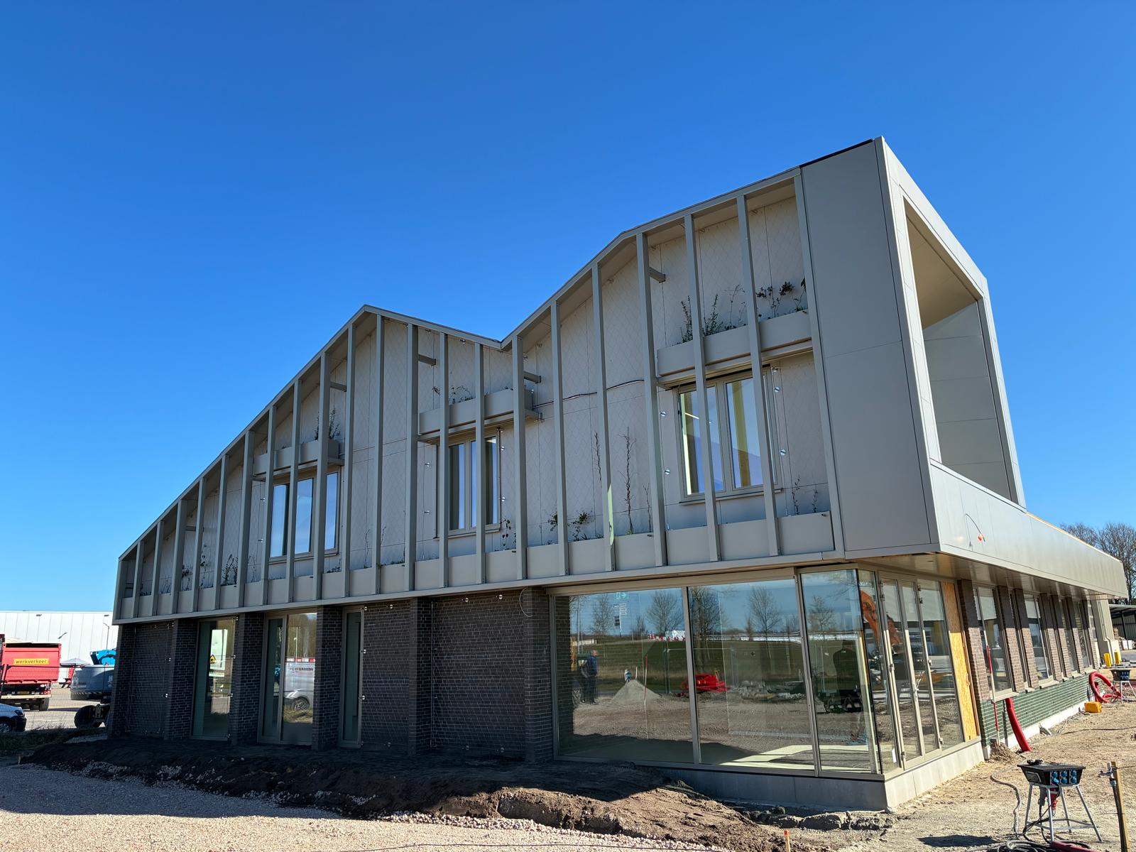 #demannenvanhendriks #nieuwbouw #loods #kantoorunits #gemeenteaaenhunze #gieten #buitendienst #duurzaambouwen #sedumdak #groendak #groenegevel #gevelbekleding #biodiversiteit #energiebesparing #groenproject #GroeneToekomst #johndeere #johndeeregroen #RAL6001
