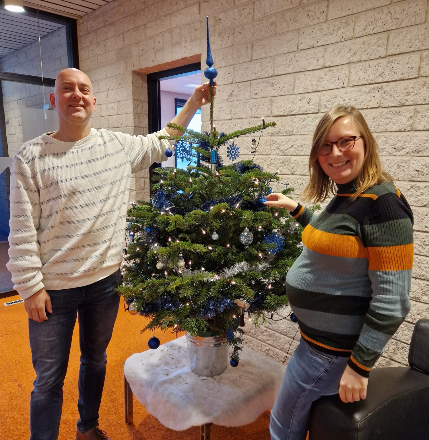 We hebben weer een nieuwe traditie bedacht: de nieuwste collega krijgt de eer om de piek in de kerstboom te plaatsen . Nu kantoor gezellig in kerstsfeer is kunnen we aftellen naar de Kerstvakantie!