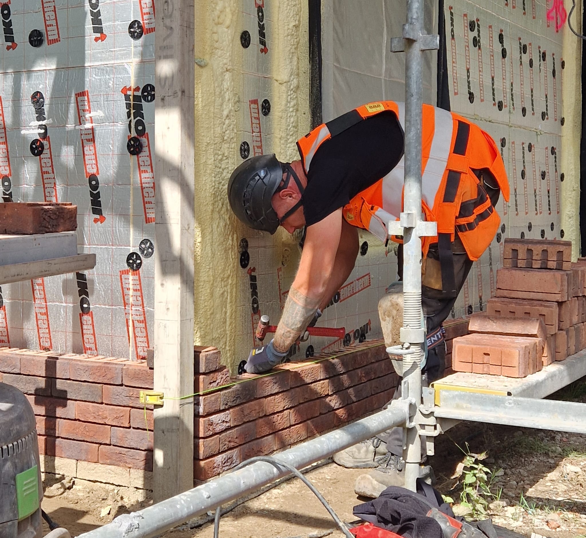 Aan de Zilverschoonstraat in Assen zijn de metselaars vorige week gestart bij Blok A. Er wordt gebruik gemaakt van een uniek systeem, de ClickBrick van @wienerbergernederland. Deze handstenen worden niet met cement aan elkaar gemetseld, maar vastgezet met verbindingsclips. Over een jaar of tachtig jaar zijn ze daardoor, zonder extra behandeling, nog steeds herbruikbaar. Dit bespaart kostbare grondstoffen en energie om nieuwe stenen te bakken.